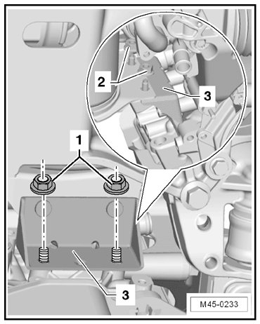 - Remove the nuts - 2 - and remove the particulate filter bracket - 3 -.