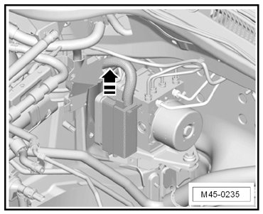 - Remove the hydraulic unit, the control module and the side retainer in - direction of arrow - from the bracket rubber insulation and turn it on its head.