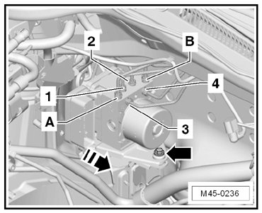 - First, mark both brake lines from master cylinder - A and B - and remove from the hydraulic unit.