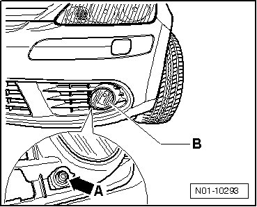 - To adjust fog lamp beam width - B -, turn adjusting screw - arrow A -.