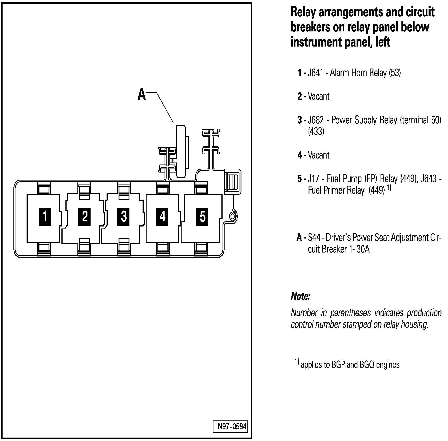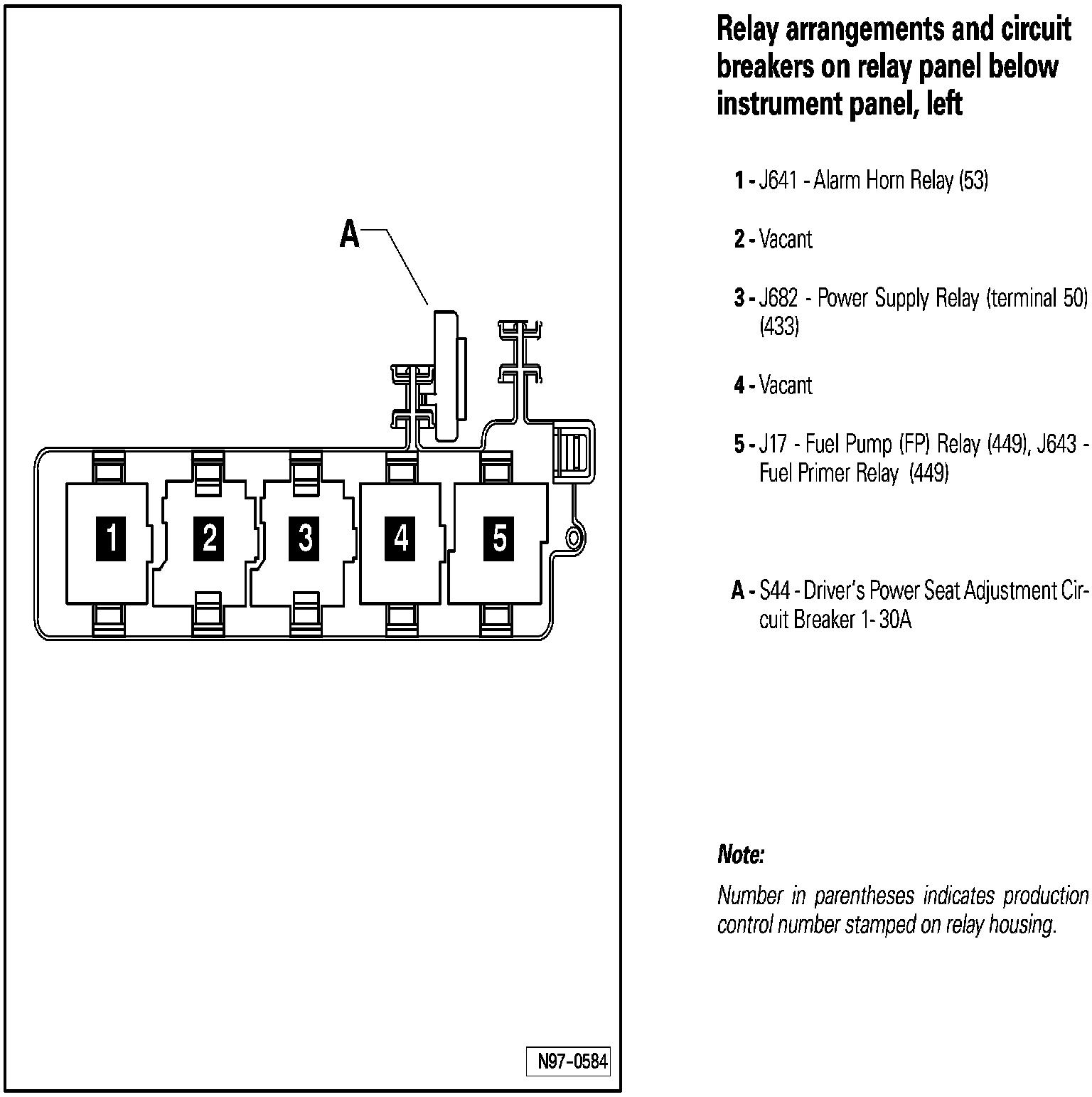 Relay Arrangements and Circuit Breakers on Relay Panel Below Instrument Panel, Left