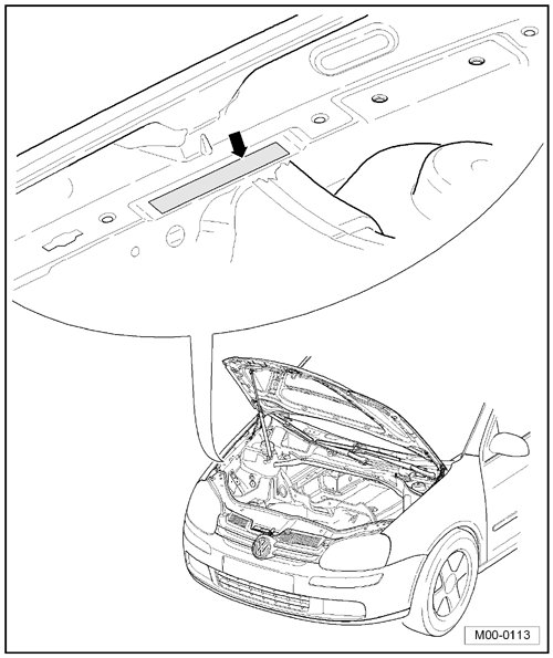 The Vehicle Identification Number (VIN) - arrow - is located on the right vehicle side in the area of the fender threaded connection.