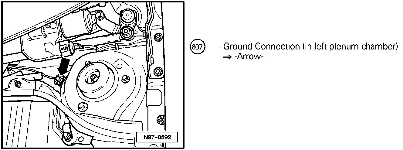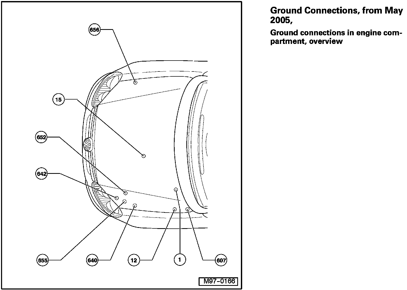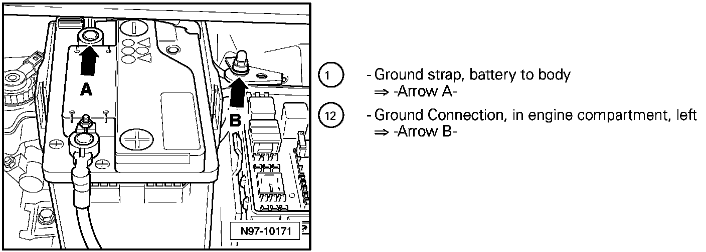 1 - Ground Strap, Battery To Body, 12 - Ground Connection, In Engine Compartment: