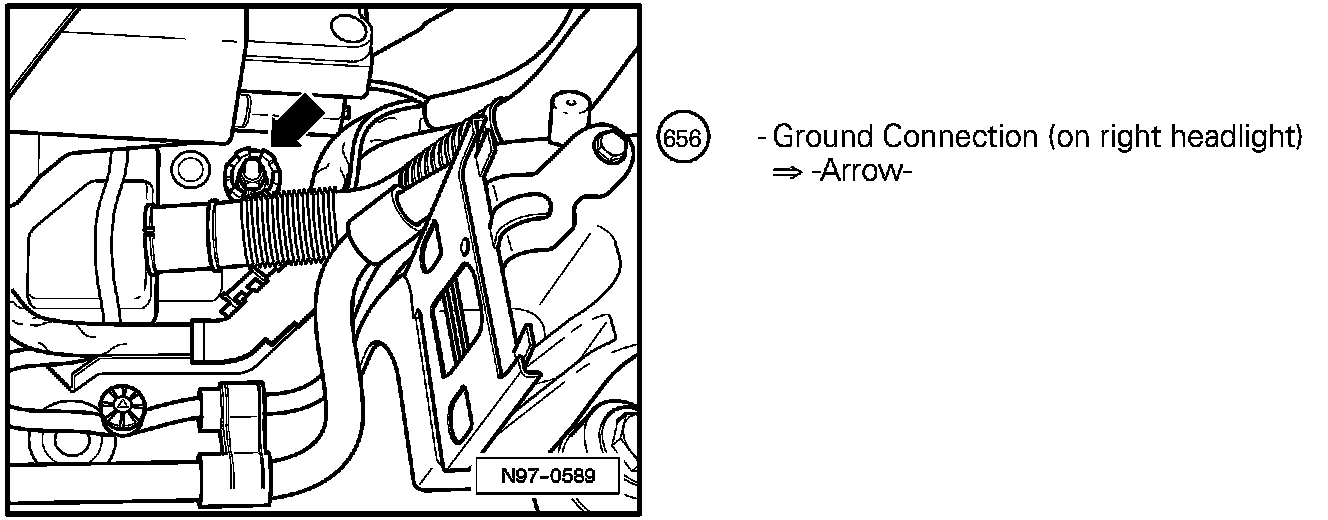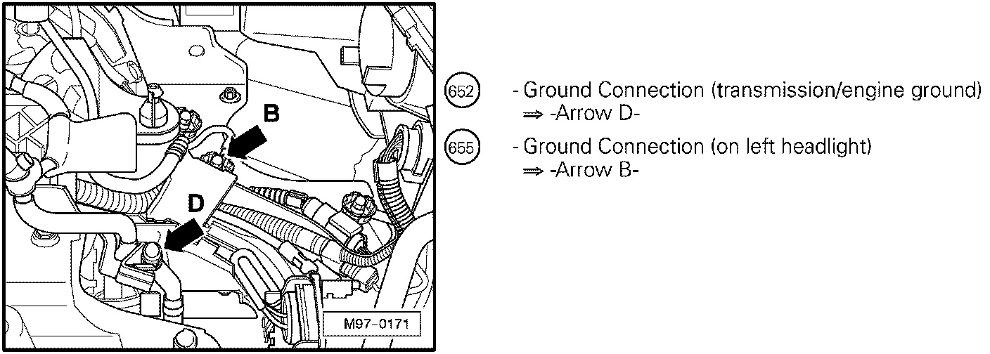652 - Ground Connection (Trans/engine Ground), Ground Connection (On Left Headlight):