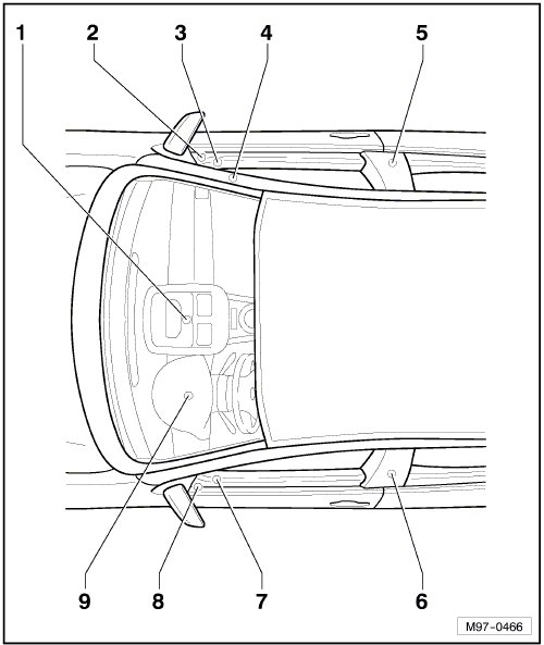 (44) - Ground Connection (on left lower A-pillar) => -Arrow B-