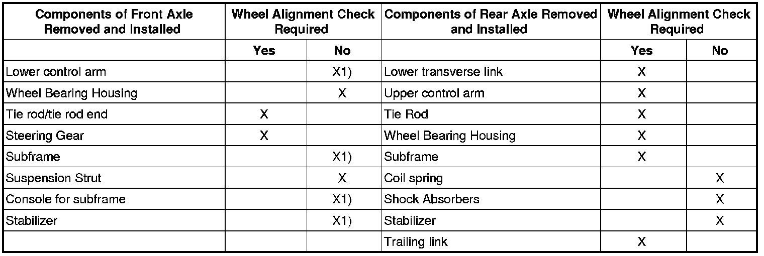 Wheel alignment checks must always include both the front and rear suspensions.