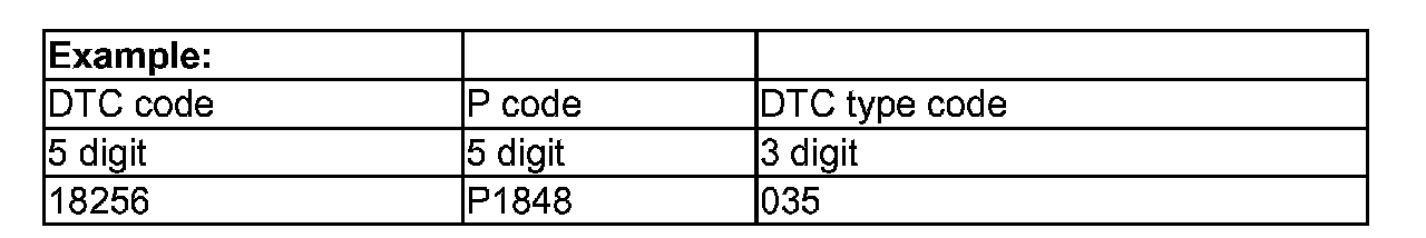 ^ The 3 digit DTC type code is a data code and may be disregarded, but the DTC type text is of use.