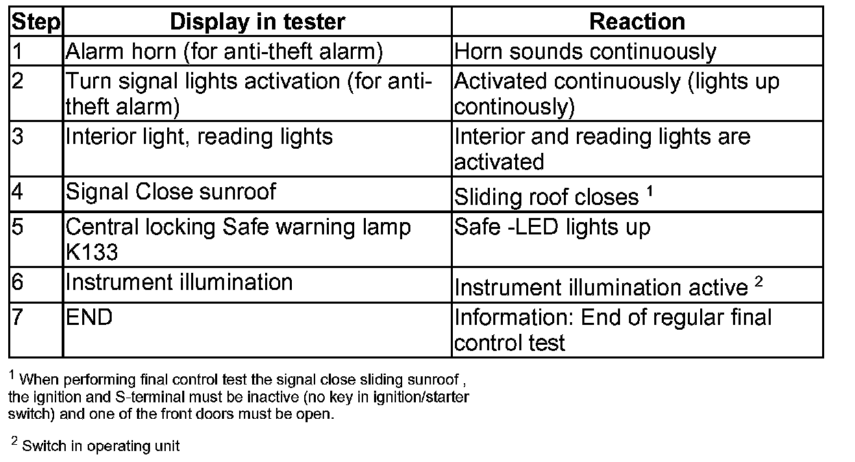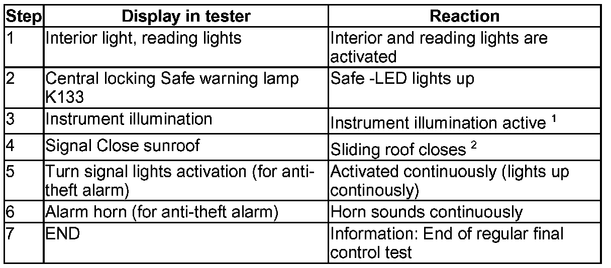 Perform individual tests: See table on - Comfort System, Power Windows, OBD Output Diagnostic Test Mode, Function 03.