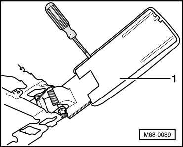 - Press retaining tabs - 2 - together, remove from retaining plate - 3 -, and pull armrest padding - 1 - upward - arrow -.
