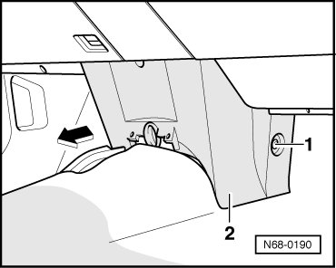 - Remove trim - 2 - toward the rear - arrow -.