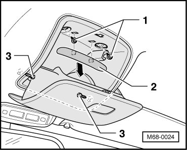 - Remove screws - 3 - and remove eyeglass compartment - 1 -.