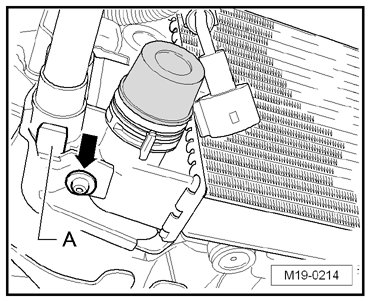 - Remove the bolt - arrow - for the refrigerant line - A -.