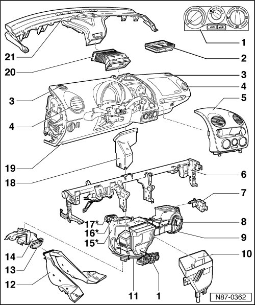 7 - Fresh/Recirculating Air Door Motor -V154- => [ Fresh/Recirculating Air Door Motor ] See Image Below.