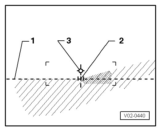 - With the low beam switched on check whether the horizontal light-dark border of the setting line - 1 - contacts the test surface.