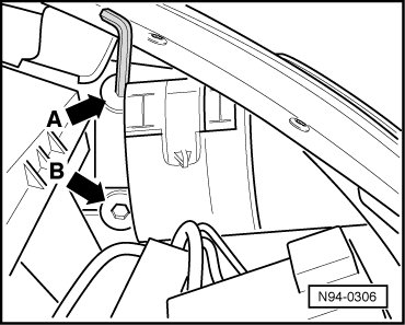 - Using a hex socket wrench or a suitable Phillips-head screwdriver, screw adjustment screws for lateral adjustment - B - and height adjustment - A - until the correct setting has been obtained.