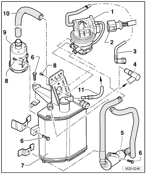 • Engine code BPR: from fuel tank see - item 10 - in => [ to EVAP Canister ] Removal and Replacement.