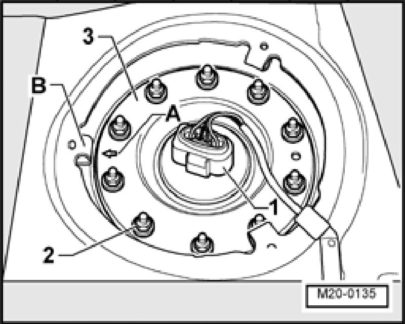 Arrow - A - on flange must point toward rear in parallel to longitudinal axis of vehicle - B -.
