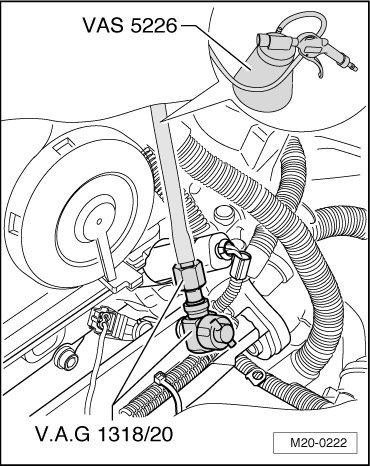 - Clamp the hose from the (VAS 5226) (for example, using (3094)) and disconnect it from the (VAG 1318/20-1).