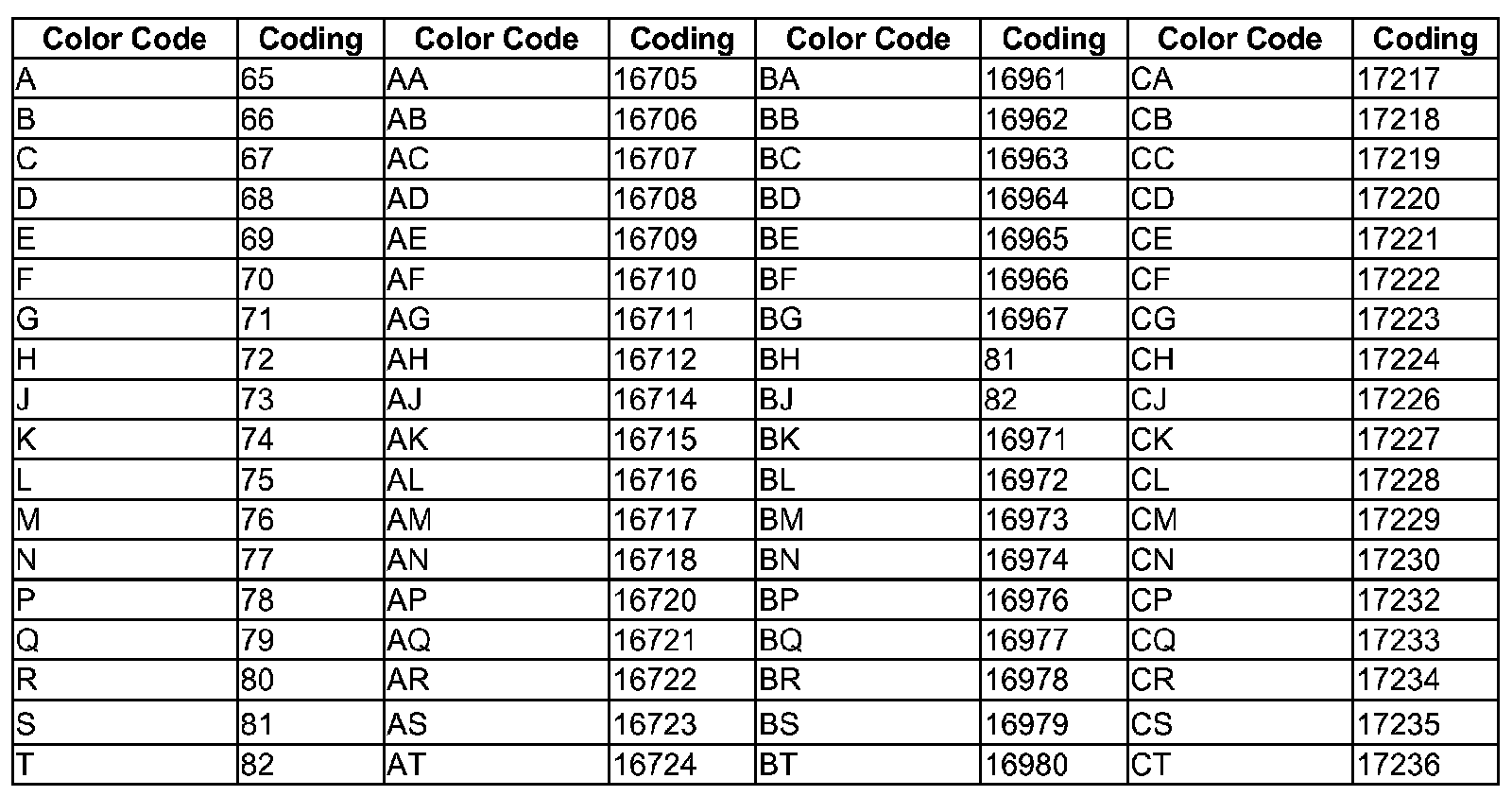 Coding from MY 2000