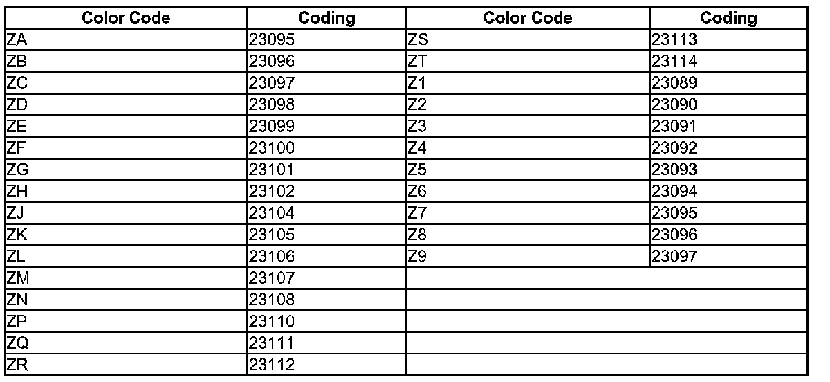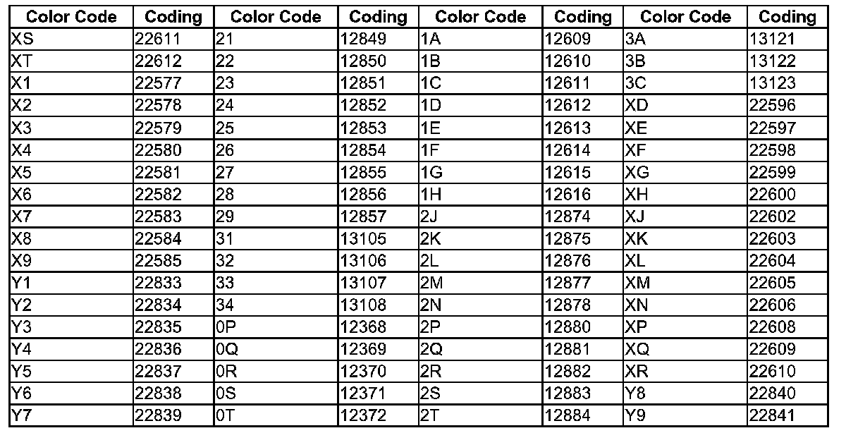 Additional Code Numbers, New Beetle Convertible.
