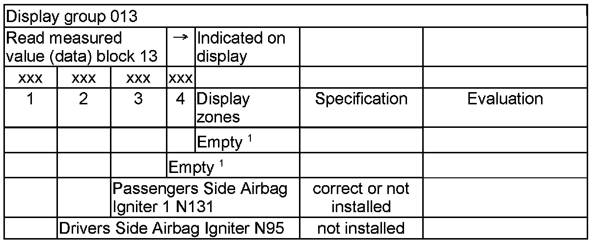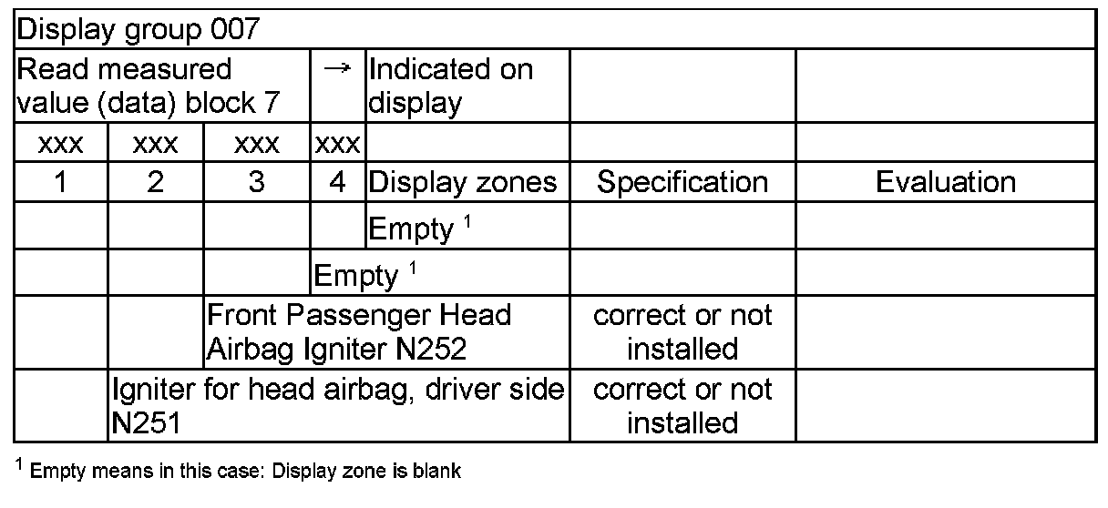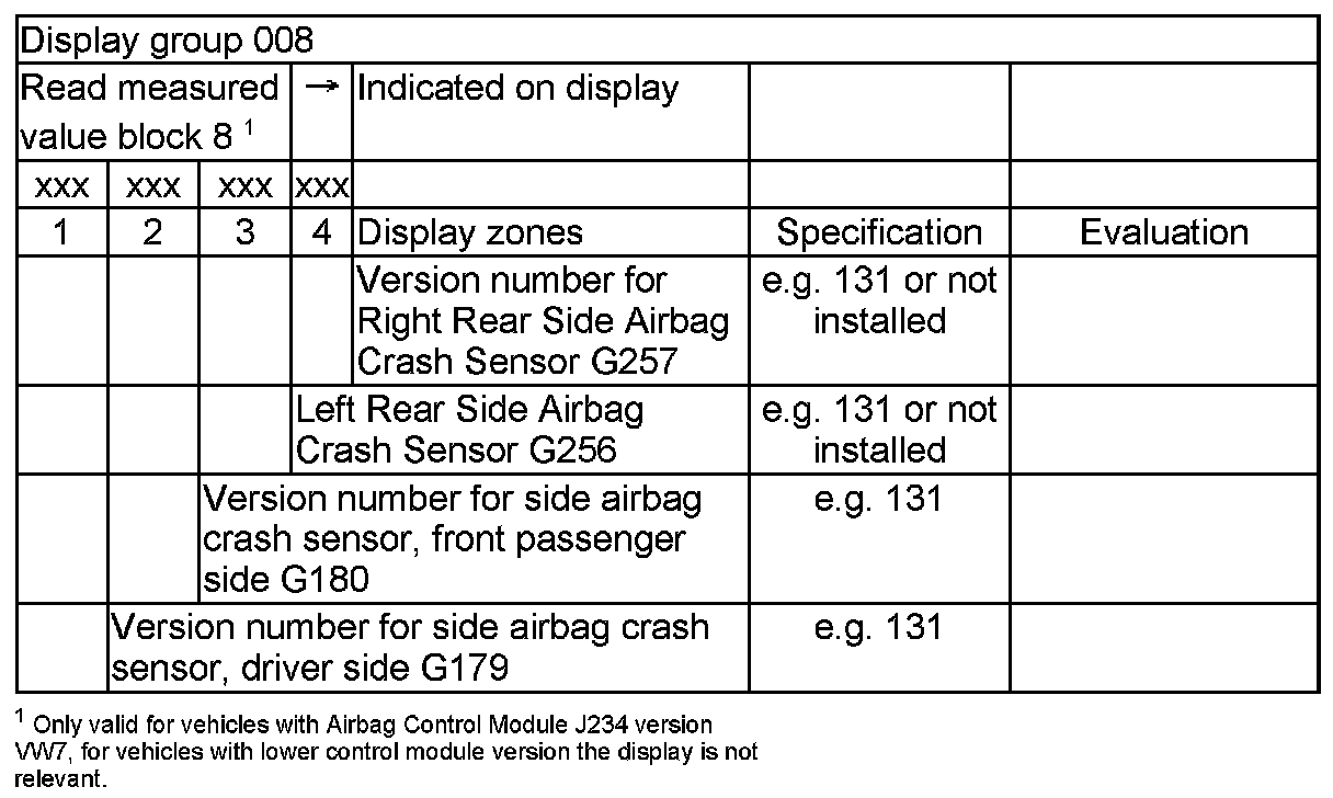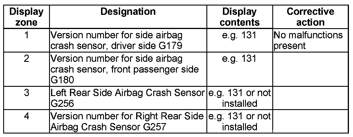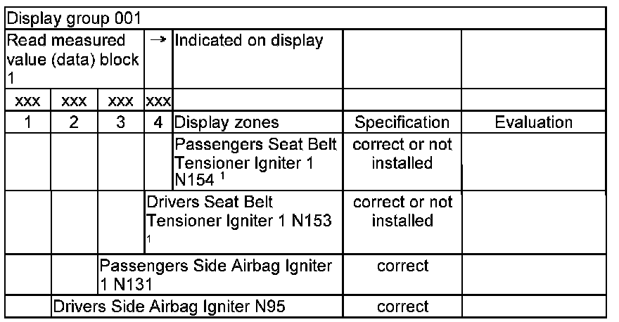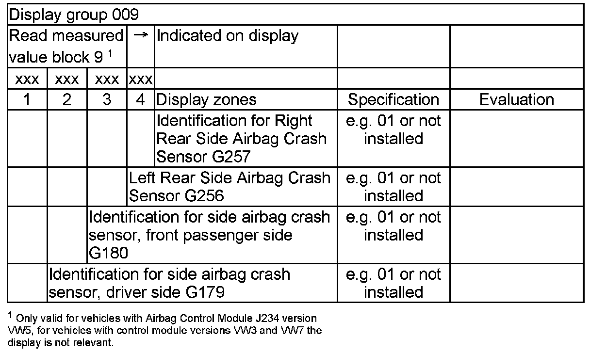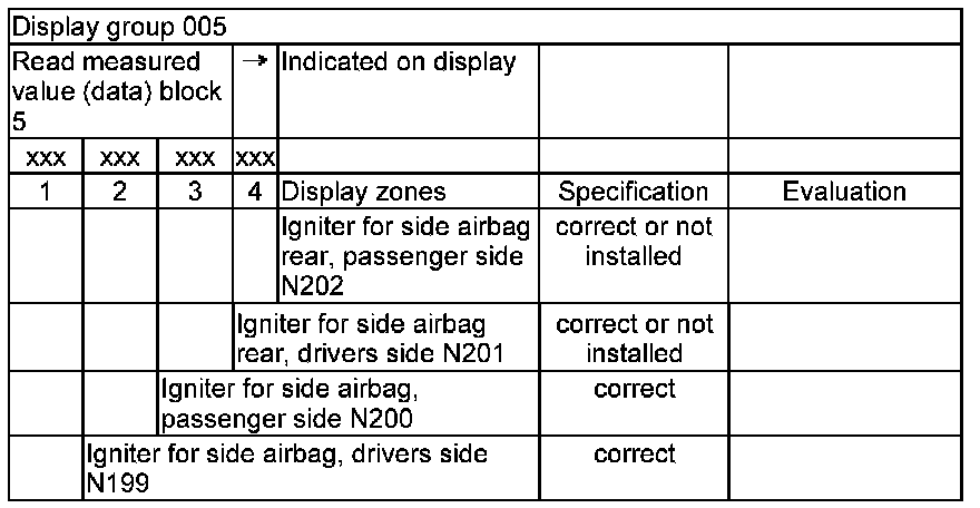 NOTE: Some of the display groups are only relevant for vehicles with the corresponding equipment (e.g. side airbag).