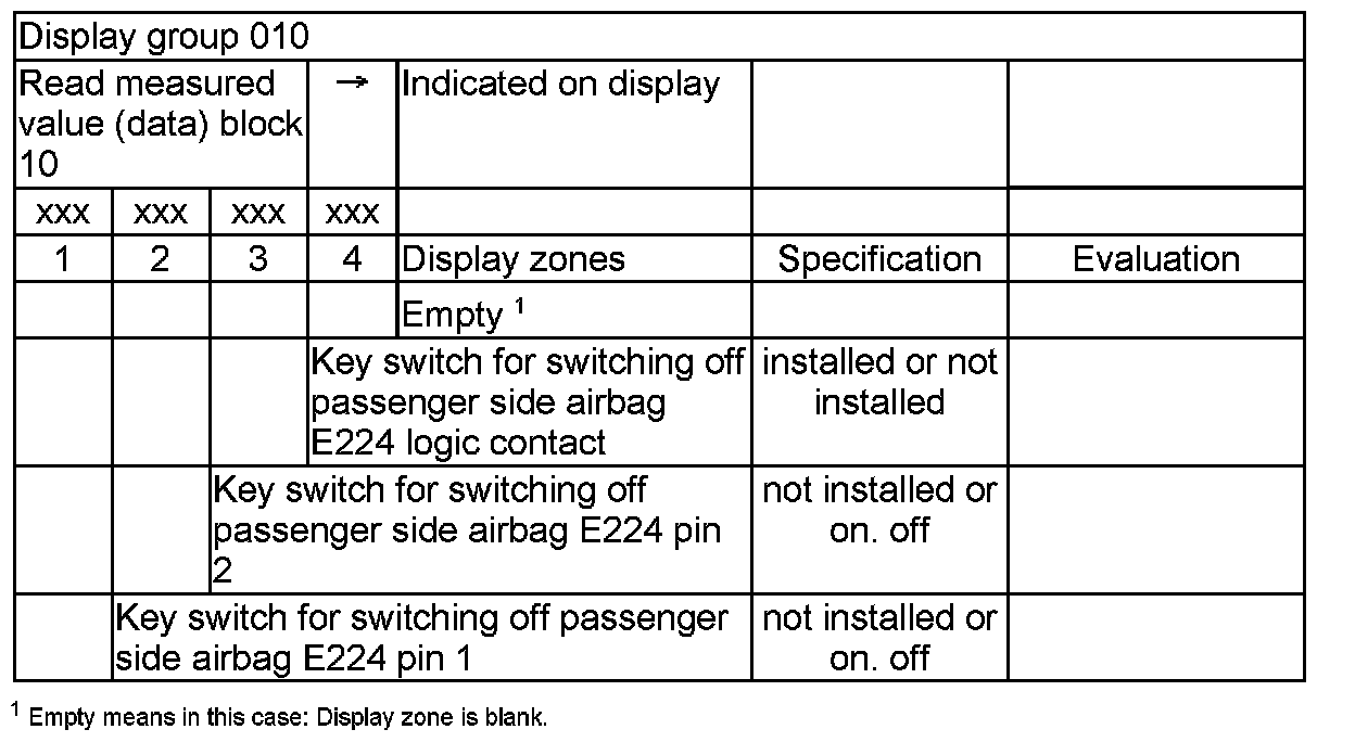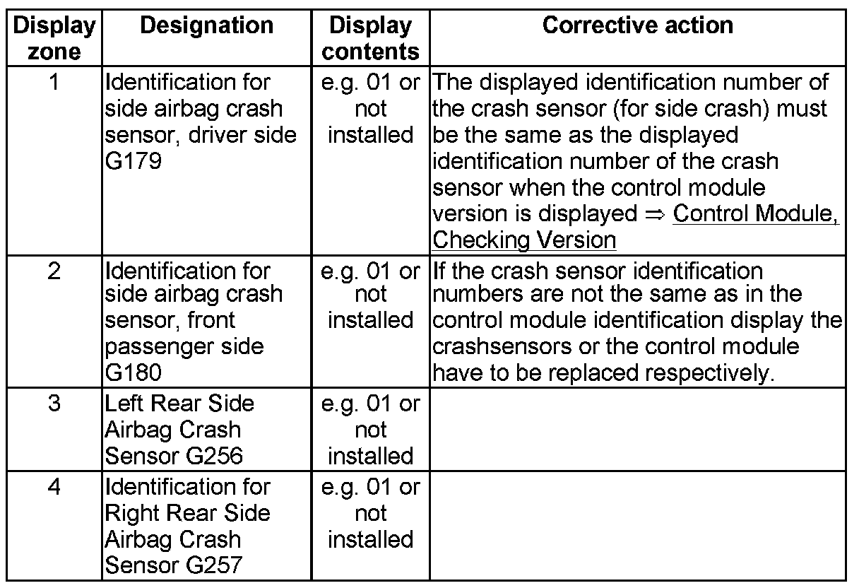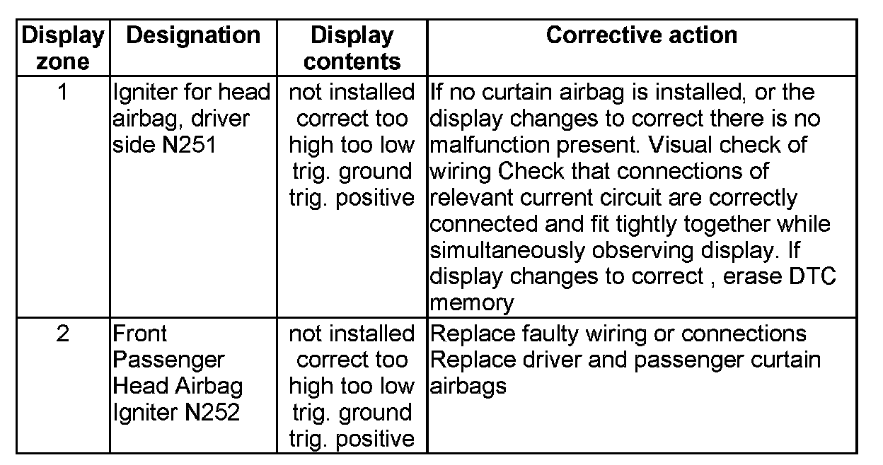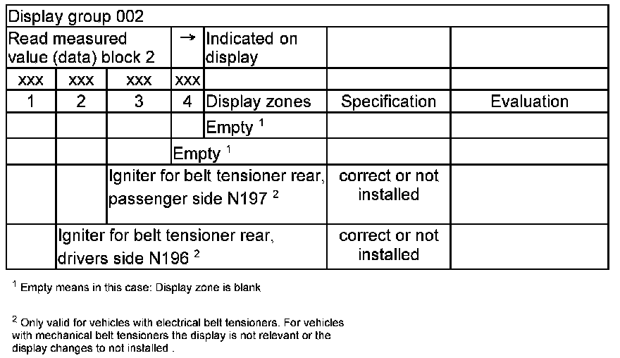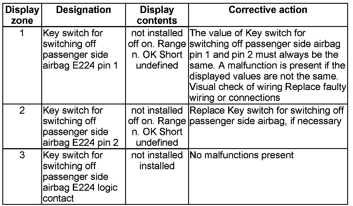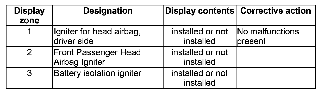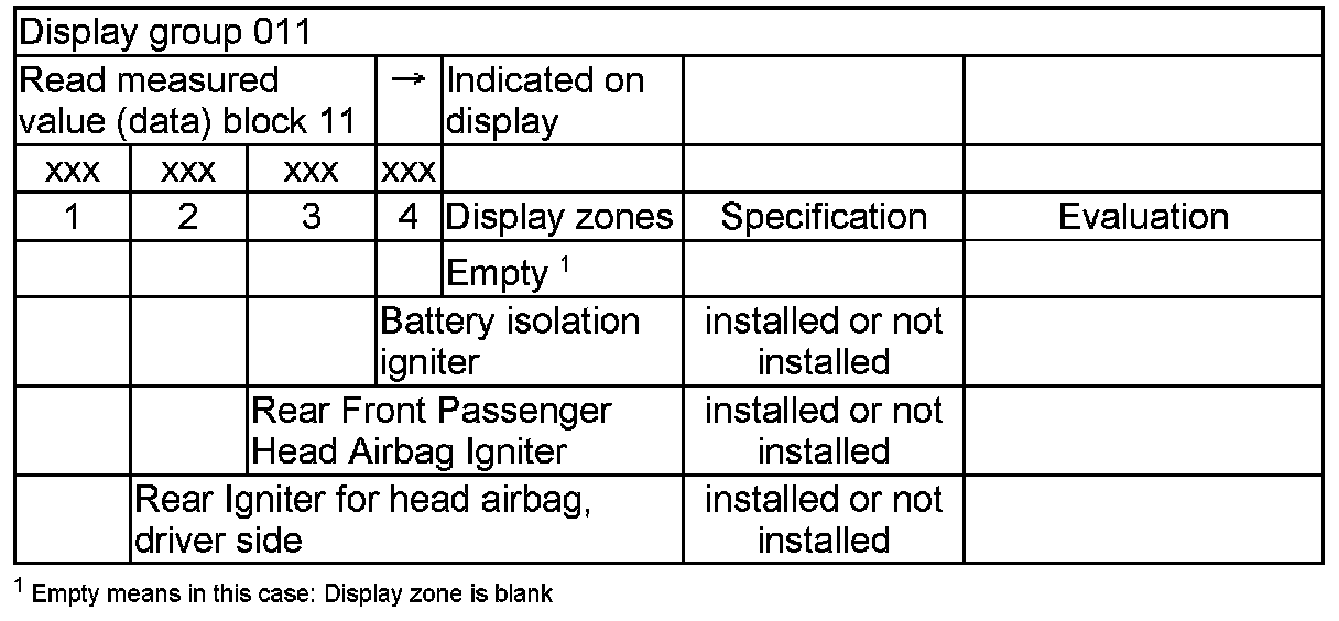 NOTE: Some of the display groups are only relevant for vehicles with the corresponding equipment (e.g. side airbag).