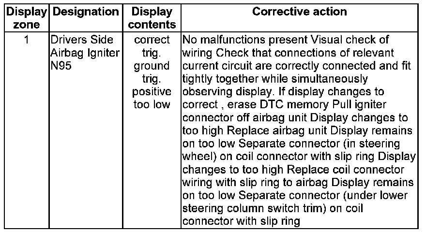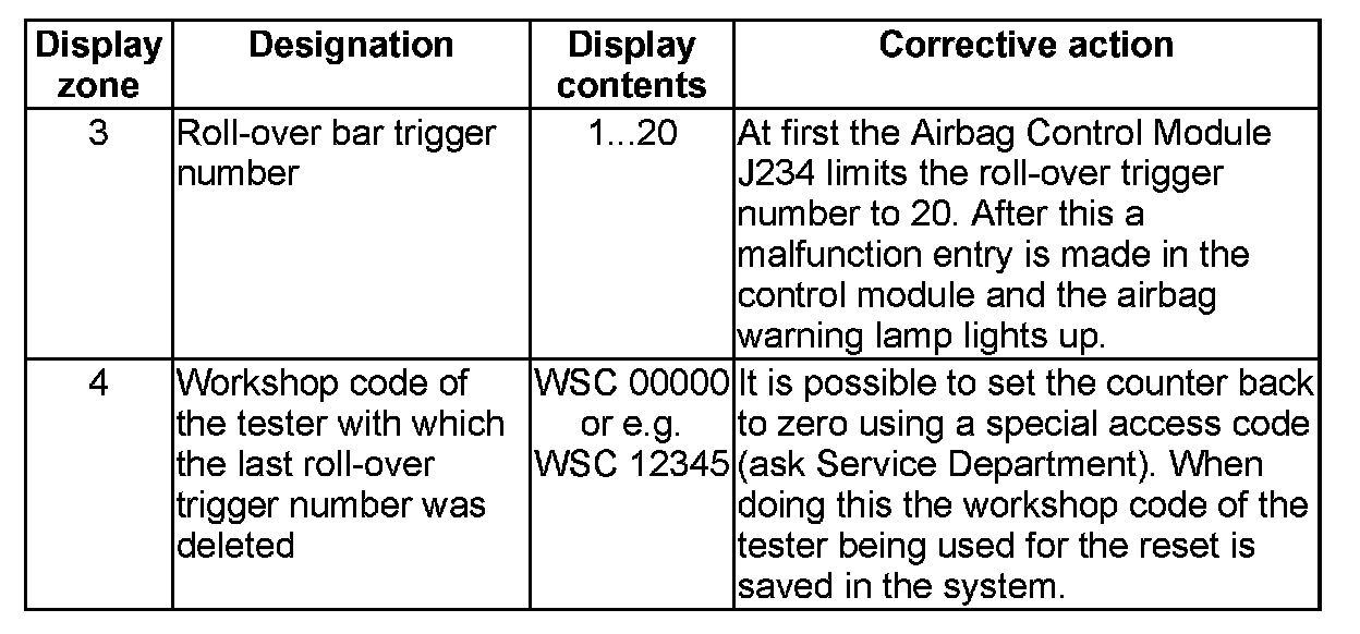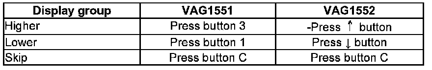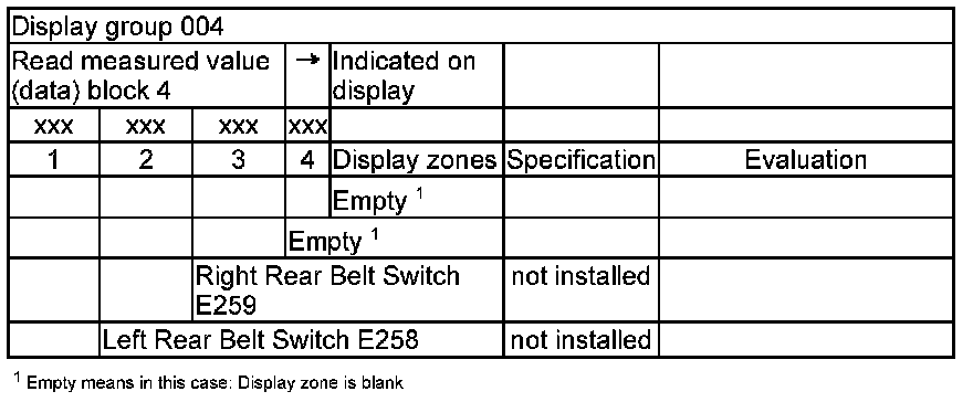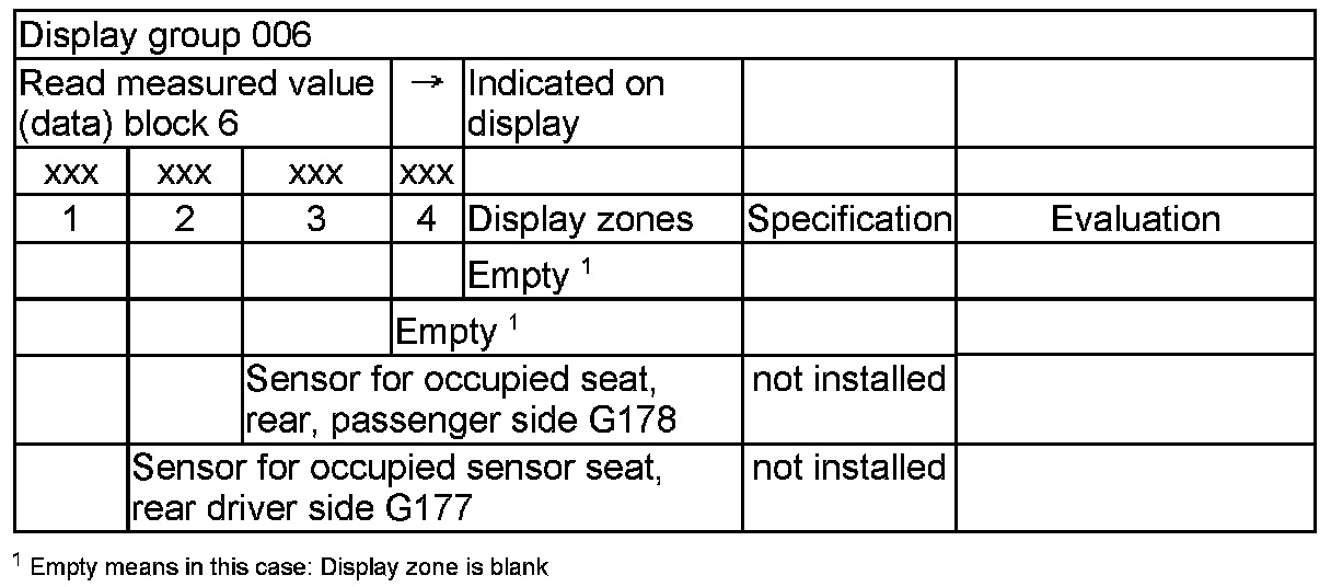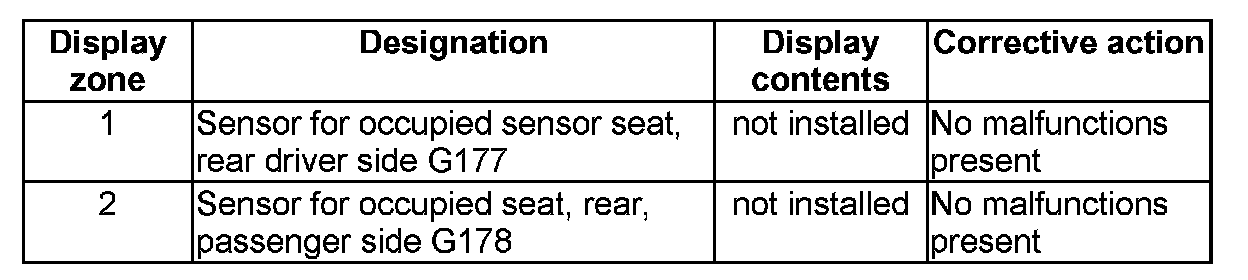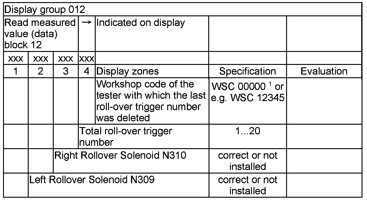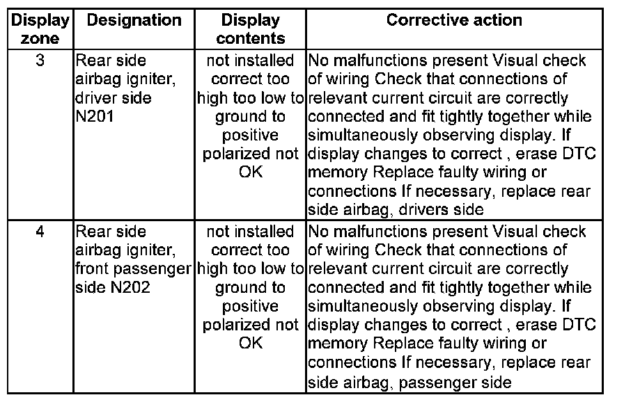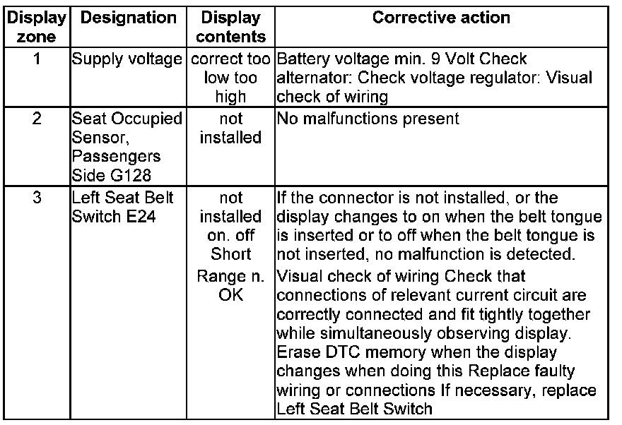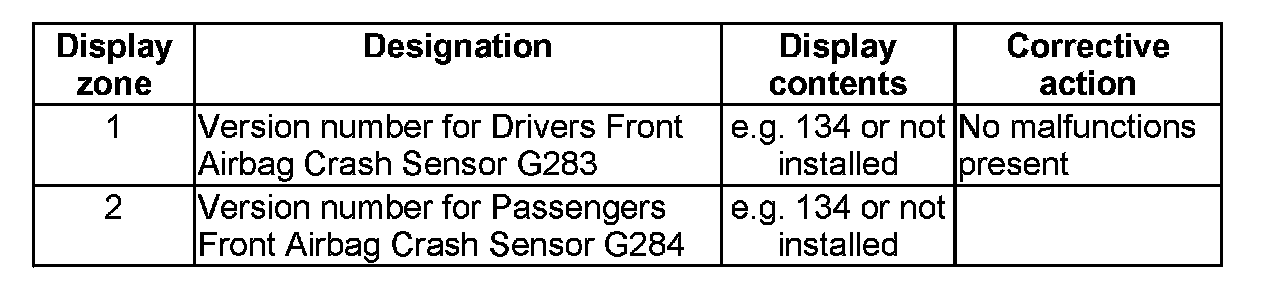 NOTE: Some of the display groups are only relevant for vehicles with the corresponding equipment (e.g. side airbag).