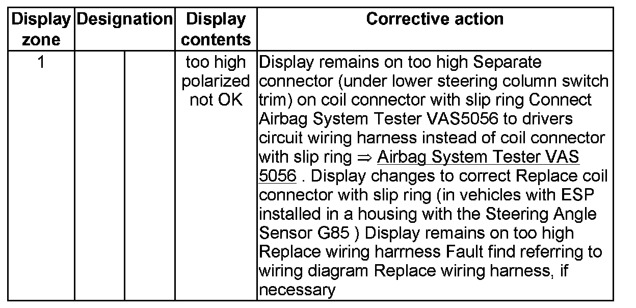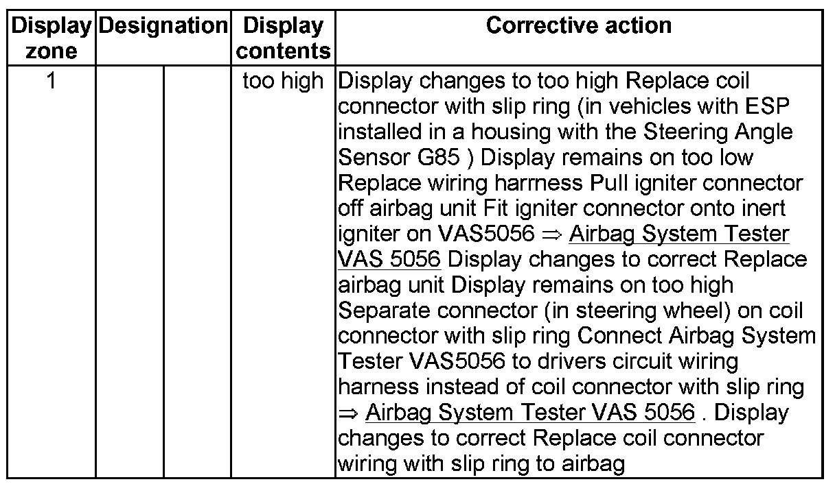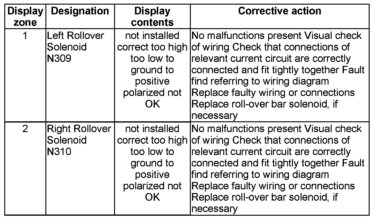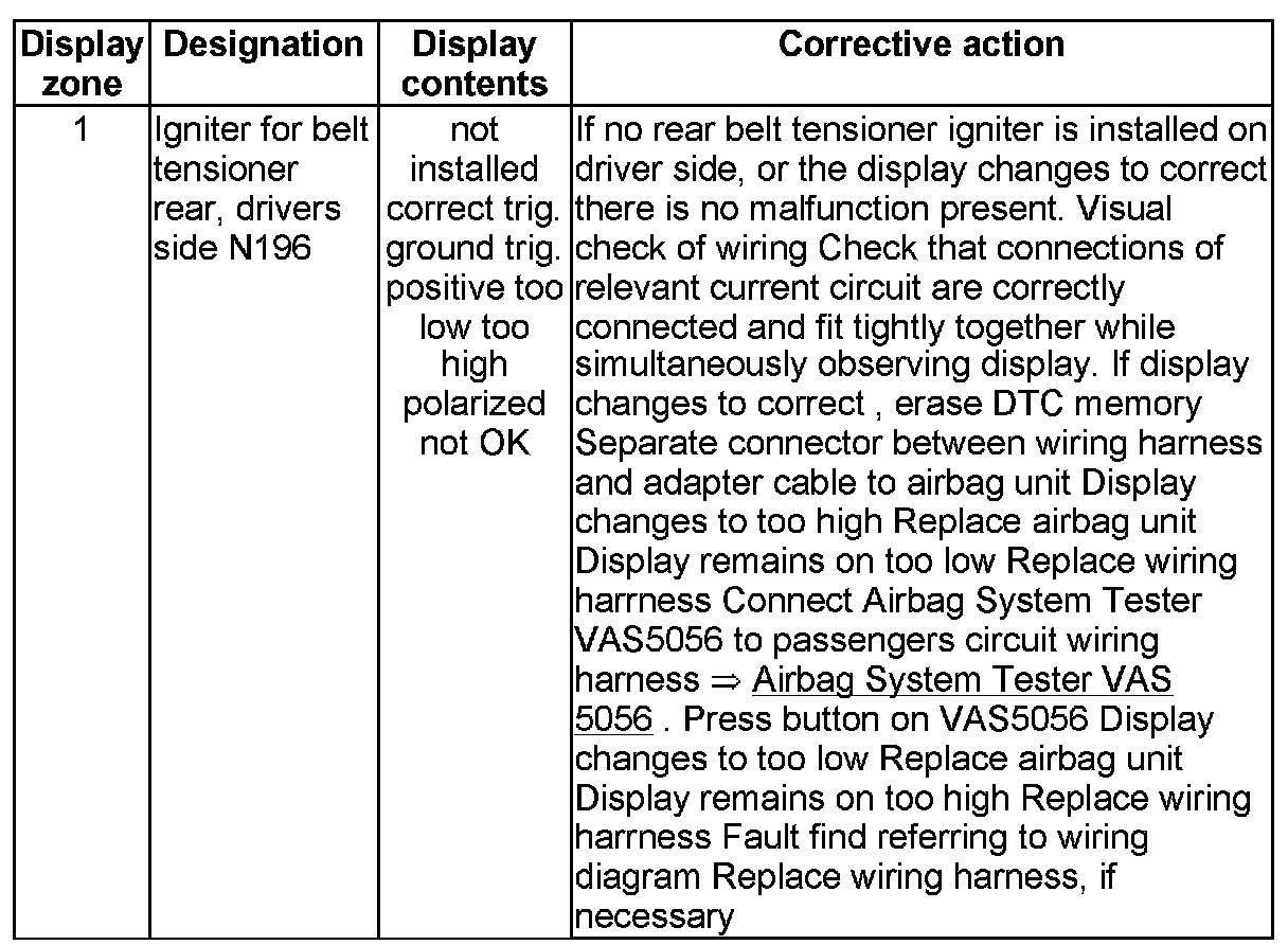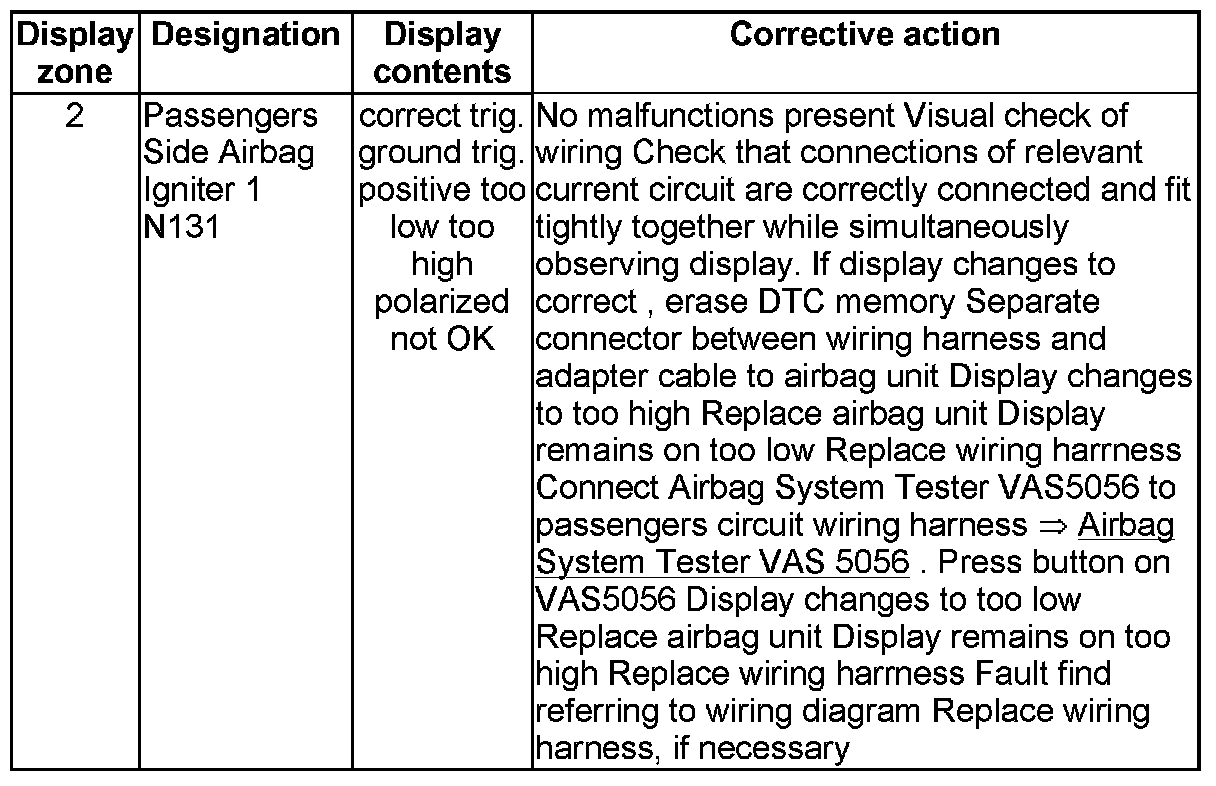 NOTE: Some of the display groups are only relevant for vehicles with the corresponding equipment (e.g. side airbag).