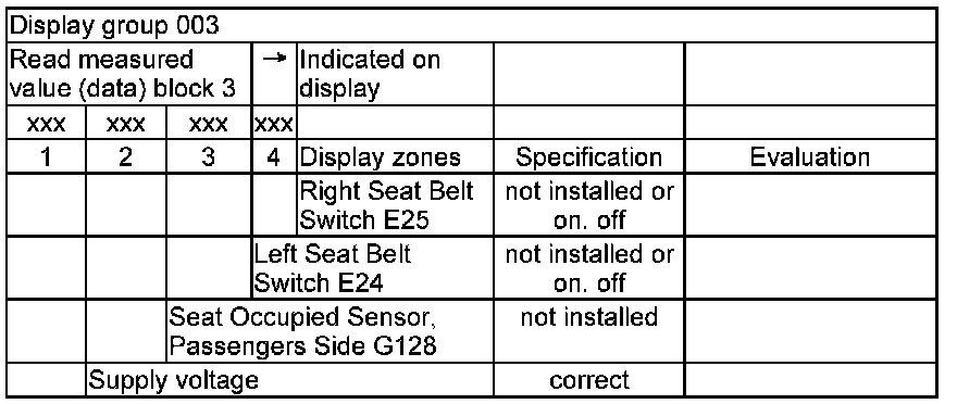 Airbag System OBD Measured Value Block, Reading, Function 08