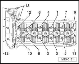 Then tighten bolts 8 Nm in sequence indicated.