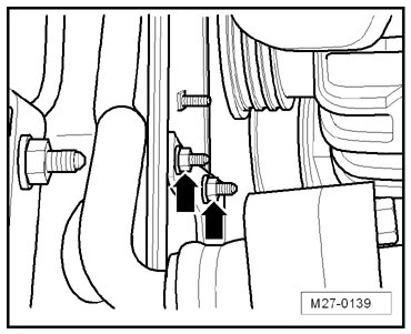 - Remove the bolts - arrows - on the belt pulley.