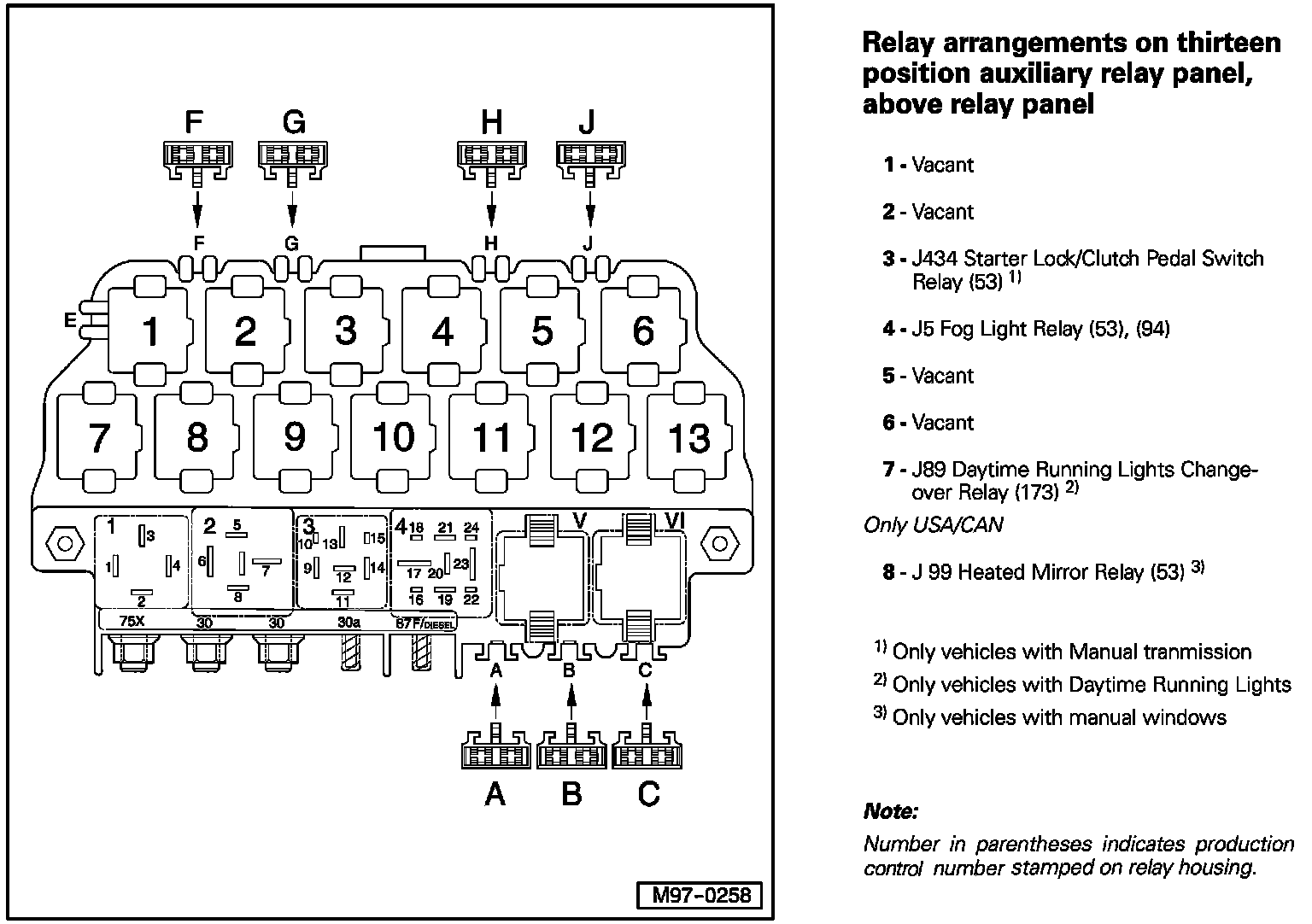 Relay Arrangements On Thirteen Position Auxiliary Relay Panel, Above Relay Panel (Part 1):
