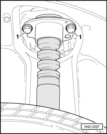- Remove bolts - 1 - while vehicle stands on wheels. If necessary, lift vehicle until bolts are accessible.