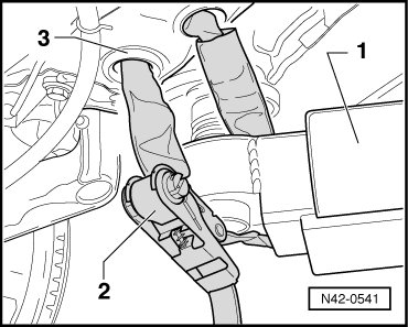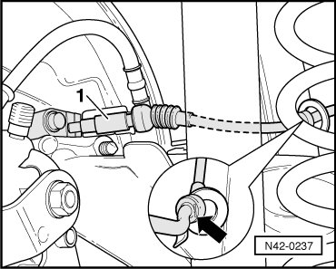 - Place engine/transmission jack (V.A.G 1383 A ) with a cloth under brake line.