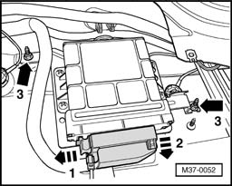 - Release connector (arrow - 1 - ) and remove connector from transmission control module (arrow - 2 - ).