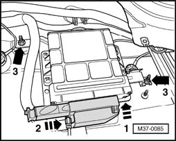 - When reinstalling multi-pin connector, fit connector onto pin of TCM J217 (arrow - 1 - ) and then lock multi-pin connector in position (arrow - 2 - ).