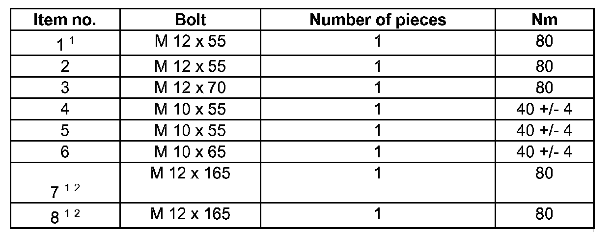 - Tighten bolts - 1 - and - 2 -, see tightening torques.