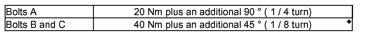 - Turn crankshaft 60° using Socket key T03003 for each nut in turn.