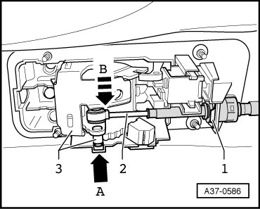 - Move selector lever/shift rod - 3 - at transmission in "P" position. Catch must engage in parking lock gear, both front wheels are locked (cannot be turned together in one direction).