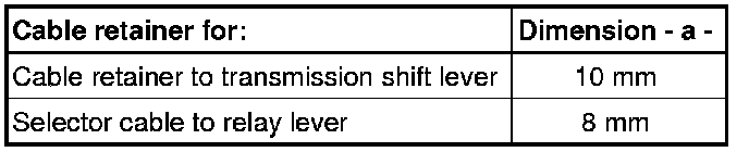 • Do not interchange! Cable retainers for selector lever cable on linkage lever and on transmission shift lever are different => [ Allocation of Cable Retainers ]