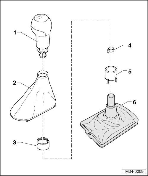 Secure on shift knob using hose clamp pliers ( V.A.G 1275) => [ (Item 1) Shift knob ]