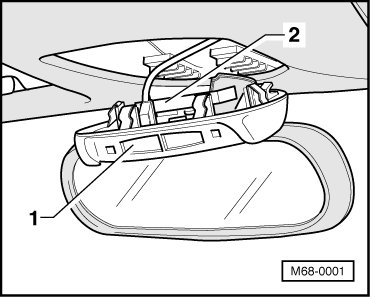 - Pull rearview mirror - 1 - down at an angle to release from retaining plate - arrow - (retaining springs in base of mirror).