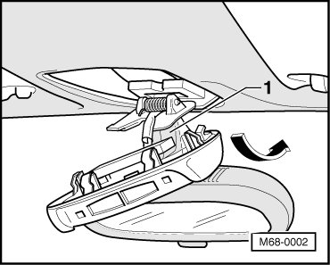 - Pull off rear edge of trim (with clock) - 1 - downward from roof trim and disengage trim at front edge.