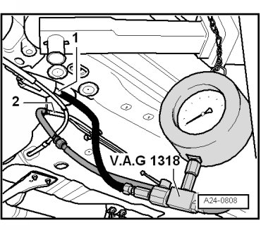 - Now check for leaks and residual pressure (entire system). Observe pressure drop on the (VAG 1318).