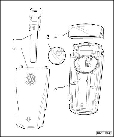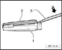 - Disengage retainers of remote control key - upper section - 2 - on remote control key - 1 -.