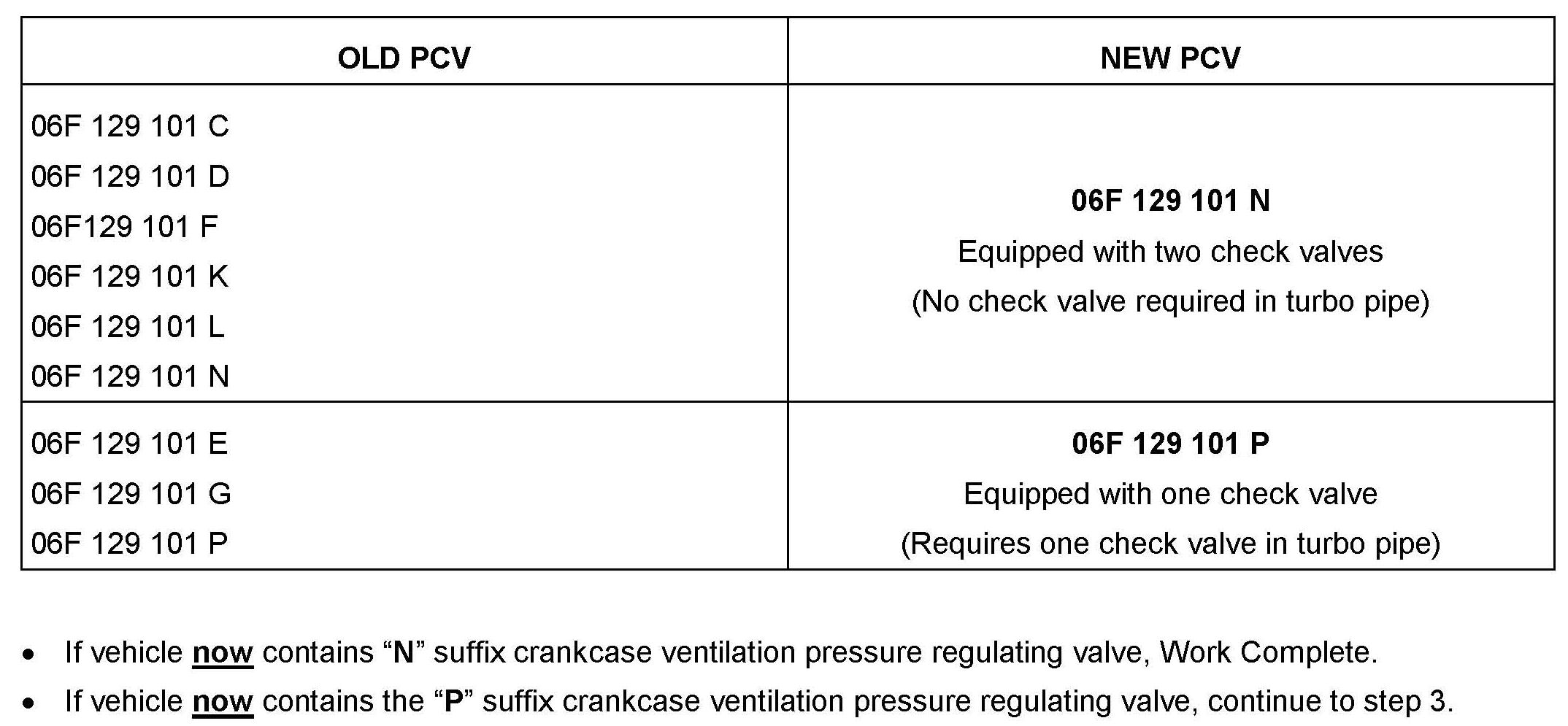 Step 3 only valid when currently installed crankcase ventilation pressure regulating valve is "P" suffix.