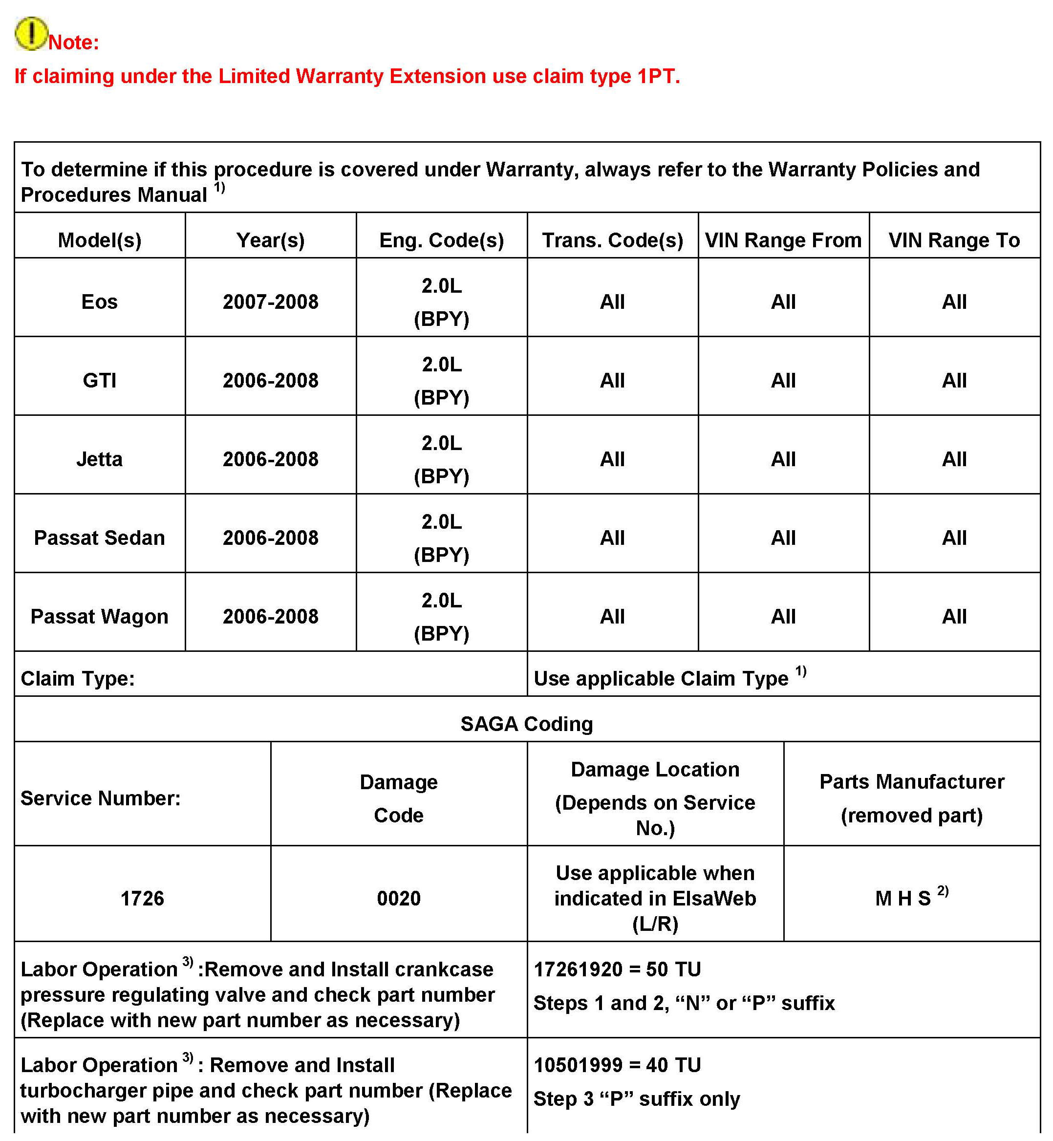 2027454 Supersedes T.B. V011209 dated March 19, 2012 to update parts table, warranty claiming information and bulletin procedure.