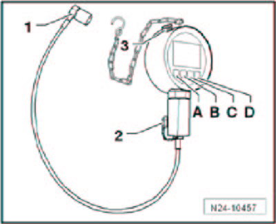 - Switch the pressure sensor tester VAS 6394/1 on by pressing the button - A - briefly.