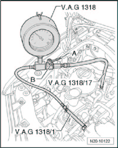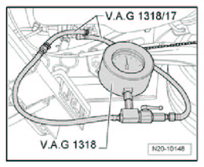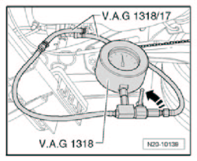 The fuel pressure must not fall below 3.0 bar within 10 minutes.