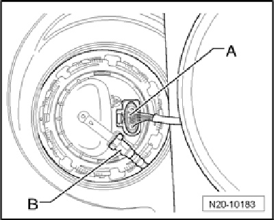 - Remove cover - 1 - with Fuel Pump (FP) control module J538 - 2 - from fuel delivery unit.